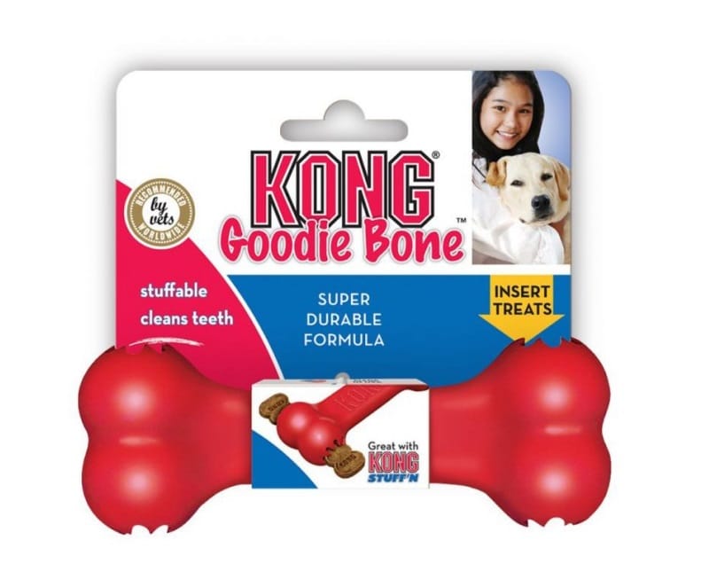 קונג צעצוע משחק עצם להטמנת חטיפים העשוי מחומר עמיד.