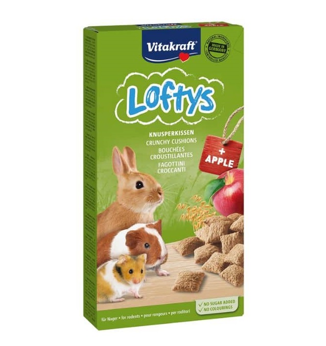 כריות קראנציות עם תפוח למכרסמים. מכיל שיבולת שועל , מומלץ לתת כפרס בין הארוחות.