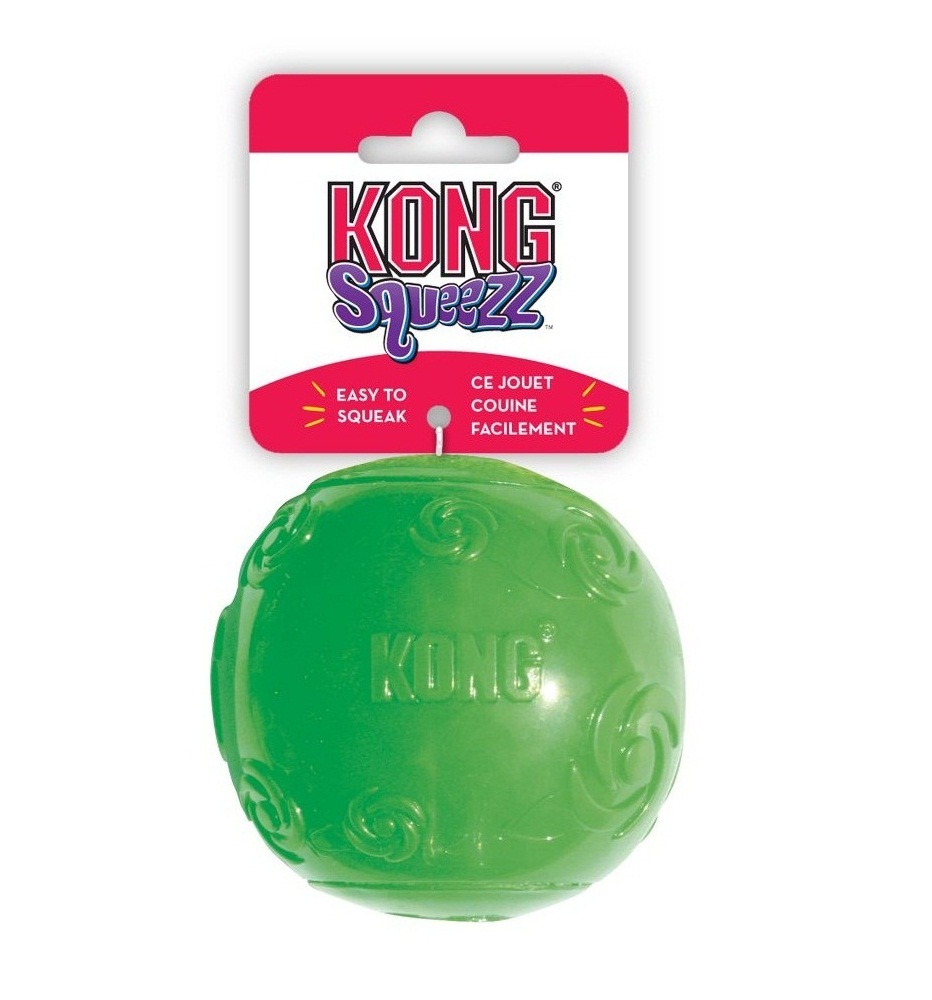 כדור משחק לכלבים של חברת קונג העשוי מחומר גמיש ועמיד להפעלות משחק לאורך זמן. ואילו הצליל המצפצץ יחודי ומפתה ומוסיף לפסקול של כיף בזמן המשחק שמעסיק כלבים.