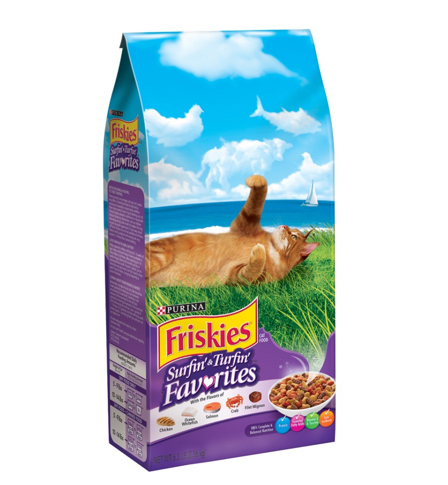 תירס טחון, קמח גלוטן תירס, קמח שיירי עוף, קמח סויה, שומן בקר מוגן על ידי טוקופרולים מקור טבעי לויטמין E, קמח בשר ועצמות, קמח דגי אוקיינוס, מצוי טעם כבד, חומצה פוספורית, קמח סלמון, מלח, קלציום קרבונאט, כולין כלוריד, קמח סרטנים, אשלגן כלוריד, טאורין, אבץ, ברזל סולפאט, מנגן סולפאט, נחושת סולפאט, קלציום יודאט, סודיום סלניט, ויטמין E, ניאצין, ויטמין A, קלציום פנטוטנאט, תיאמין, ריבופלאבין, B12, פירידוקסין, חומצה פולית, ויטמין 3D, ביוטין, מנדיון סודיום ביסולפיט (ויטמין K1), טעם פילה, מיניון טבעי, אדום 40, טריפטופאן, DL מתיונין, צהוב 5, כחול 2. תכולה קלורית: 3,581 קק”ל/ ק”ג