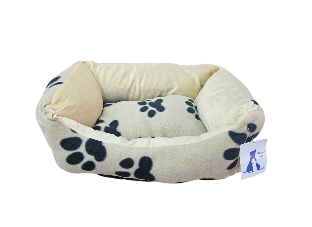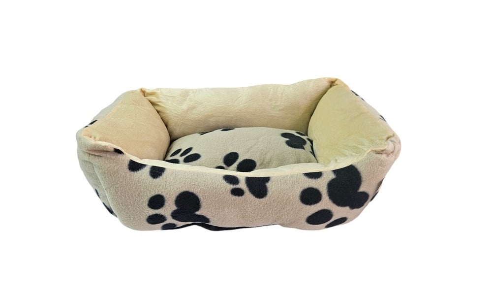 המיטה מגיעה בעיצוב עם הדפס של כפות רגלים של כלבים.