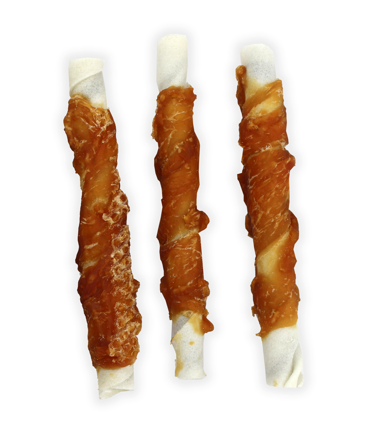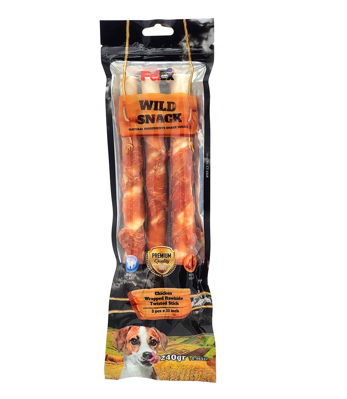 עצמות לעיסה עור בקר לא מעובד בציפוי בשר עוף בגודל של 11 אינץ 240 גרם