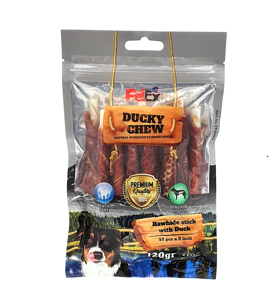 חטיף לכלב מצופה בשר ברווז מיובש בצורת מקלות לעיסה