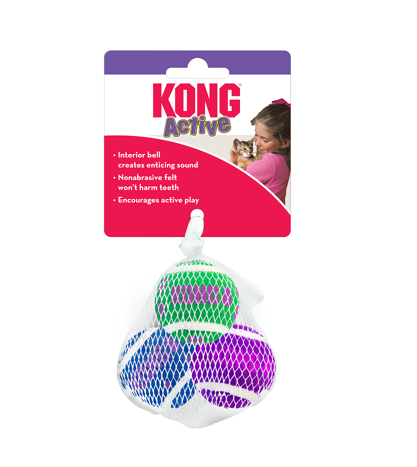 כדורי הטניס של KONG Cat מתהדרים לבד לא שוחק ולא יפגעו בשיניים במהלך המשחק. חתולים לא יוכלו להתנגד לפעמון פנימי, מה שמעודד פעילות גופנית אצל חתולים מקורה.
