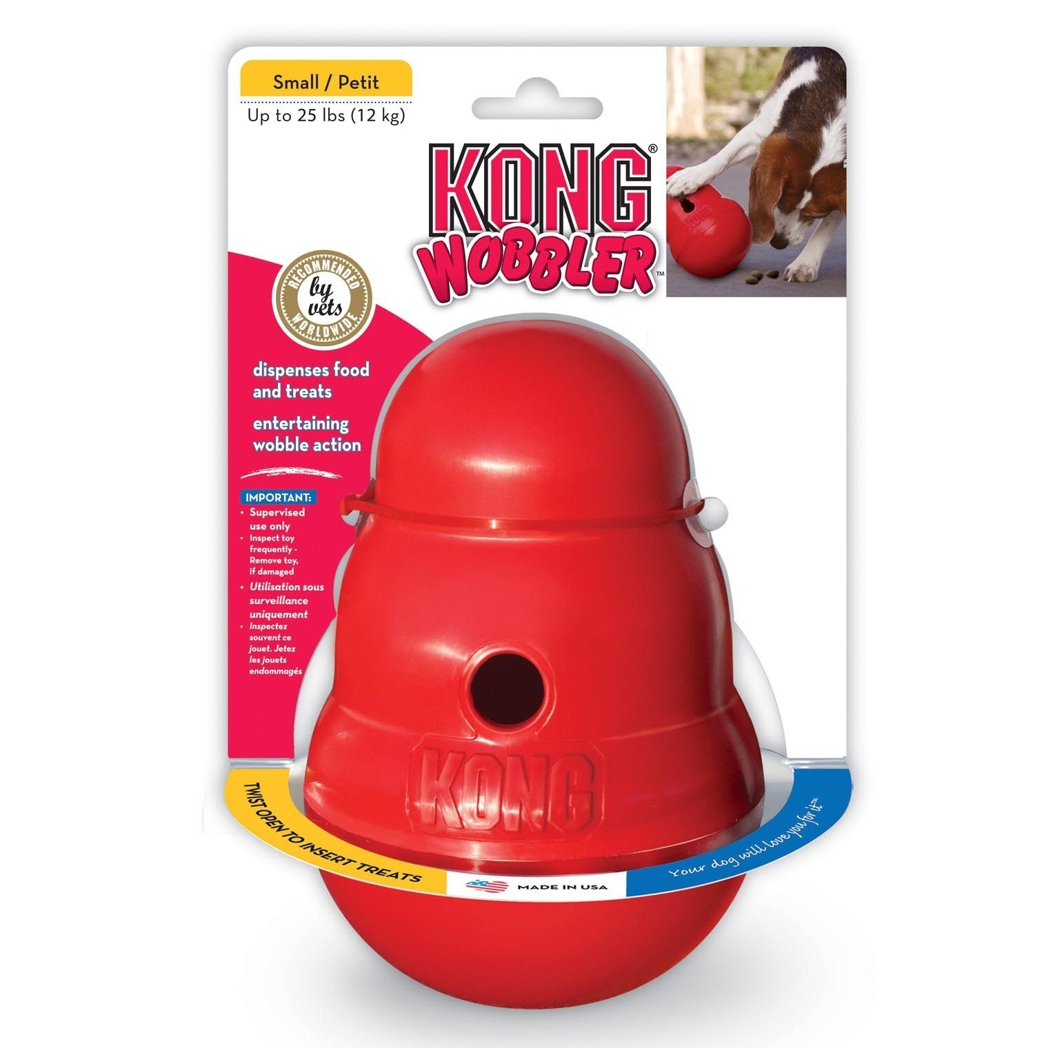 קונג וובלר לכלבים במשקל של עד 12 ק”ג. הצעצוע משחק יושב זקוף עד נדחף (נחום תקום) על ידי כפתו של כלב או האף ולאחר מכן מעת לעת מחלק פרסים טעימים כפי שהוא מתנדנד. התנועה בלתי צפויה בעזרת משקות תחתית השומרת על הצעצוע מאתגר. קונג וובלר יכול לשמש כתחליף לקערת  איטית ולהאריך ארוחה תוך מתן פעילות גופנית לכלב שלך.