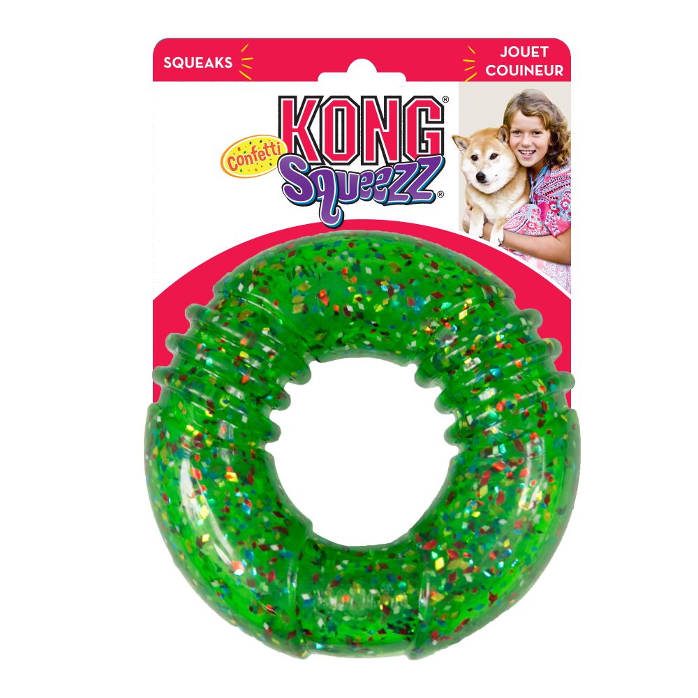 משחק לכלבים טבעת של חברת קונג העשוי מחומר גמיש ועמיד להפעלות משחק לאורך זמן. צבעים עזים עם נצנוץ מבפנים מוסיפים להנאה ואילו החורק מוסיף לפסקול של כיף בזמן המשחק שמעסיק כלבים.