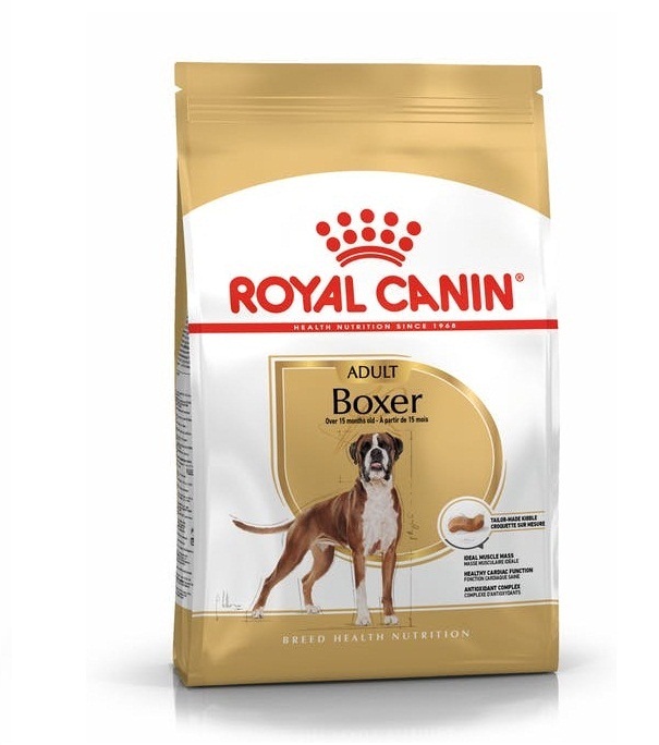 מזון יבש לכלבים גזעיים בוגרים תוצרת חברת רויאל קנין אשר פותח במיוחד עבור גזע הבוקסר.