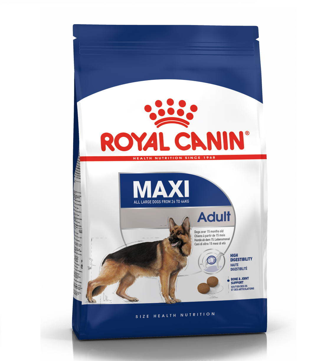 חלבון עופות מיובש, אורז, שומן מהחי, אייסולאט של חלבון מהצומח, תירס, קמח תירס, קמח חיטה, גלוטן תירס, חלבונים מהחי שעברו הידרוליזה, ציפת סלק, מינרלים, סיבים צמחיים, שמן סויה, שמן דגים, פרוקטו-אוליגו-סכרידים (0.34%), זרעי וקליפות פסיליום, שמרים שעברו הידרוליזה (מקור למנו-אוליגו-סכרידים), תמציות שמרים (מקור לבטה גלוקאנים), תמצית ציפורן חתול (מריגולד, כמקור ללוטאין), סרטנאים שעברו הידרוליזה (מקור לגלוקוזמין), סחוס שעבר הידרוליזה (מקור לכונדרויטין), קלינופטילולייט (10 גר’ק”ג), תמצית יוקה (125 מ”גק”ג), חומרים משמרים- חומרים נוגדי חימצון.