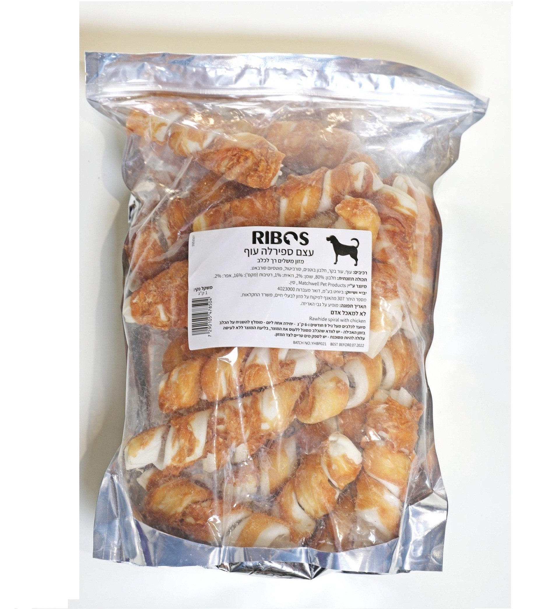 חטיף עצם לכלב בציפוי עוף בגודל גדול בעל טעם וריח שכלבים אוהבים.